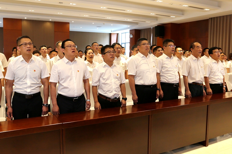 6月30日上午,集团全体干部职工统一列队参加升国旗仪式;全体党员在集团书记、董事长方玉新的带领下共同重温入党誓词,共唱红色歌曲《没有共产党就没有新中国》《歌唱祖国》;同时,方玉新同志以《点亮红色灯塔 引领国企远航》为题为全员讲授了党史学习教育专题党课;市委党校教务处颜志强主任作了《救国兴国富国强国——中国共产党百年奋斗史》专题讲座。随后,集团领导一行前往党员“双报到”“共驻共建”社区走访慰问了“光荣在党50年”老党员。7月1日,集团全体干部职工集中收听收看中国共产党成立100周年庆祝大会实况,共同观看了红色主旋律教育影片《1921》。