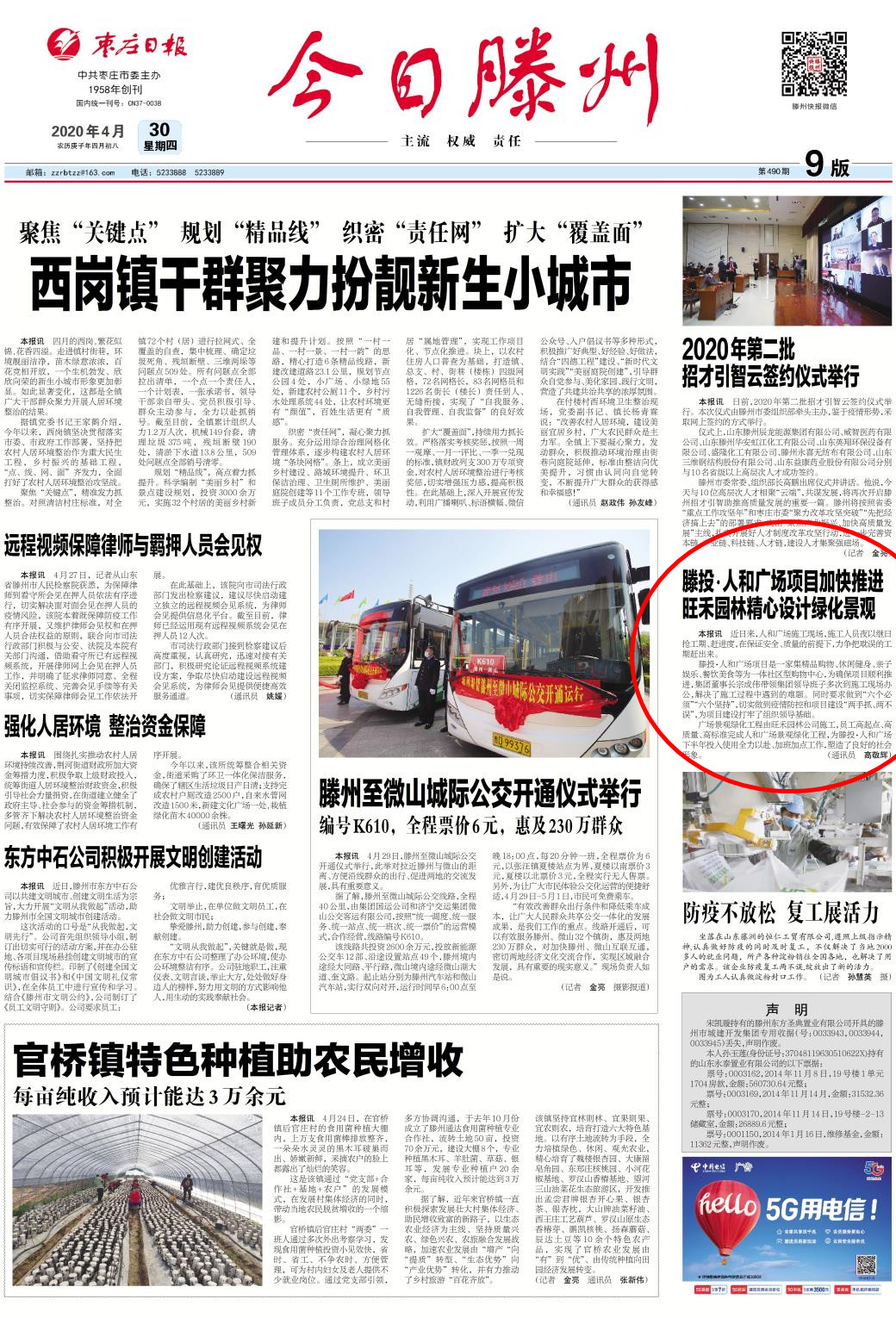 滕投·人和广场项目加快推进 旺禾园林精心设计绿化景观